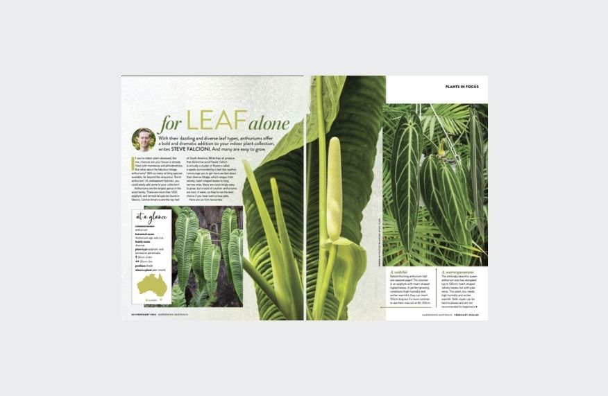 Anthuriums are striking plants admired for their bold foliage.