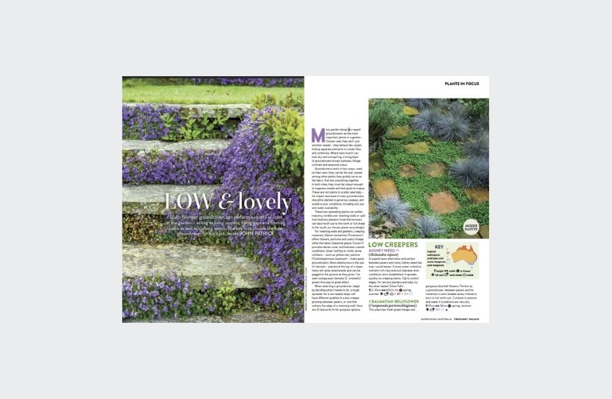 Explore a modern Aussie garden. Discover a new generation of gardens that’s inspired by nature – looser, unstructured and with a focus on natives. Choosing a groundcover? Some say these multi-taskers are the most important plants in the garden. Plus, maximise your cool-season crops by getting them started now.